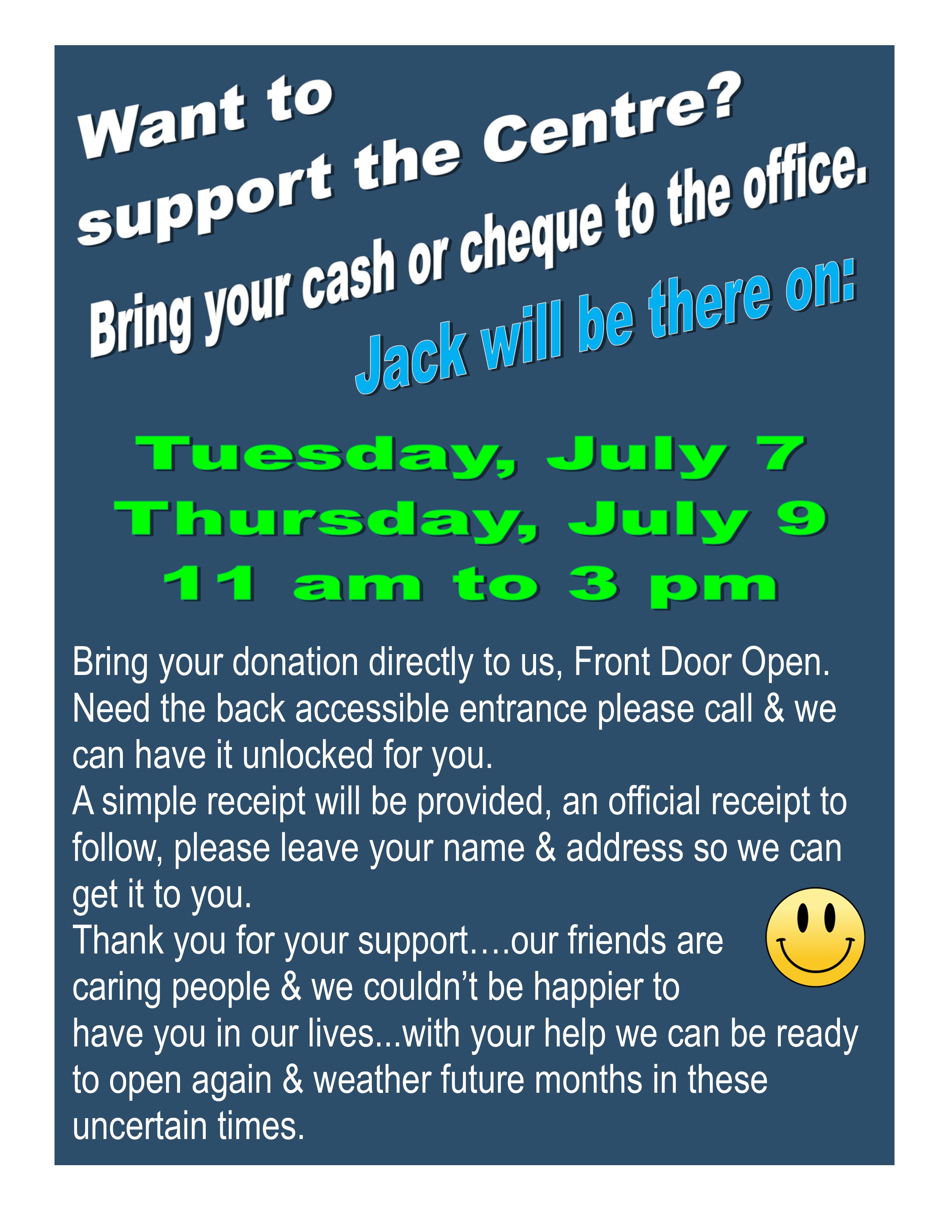 » july jack at centre donations